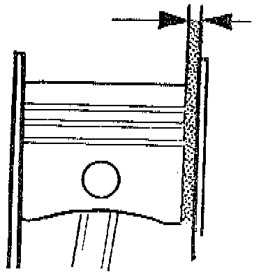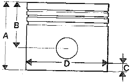 C = Measure piston diameter at right-angles to wrist pin hole at distance "C" from edge of skirt.