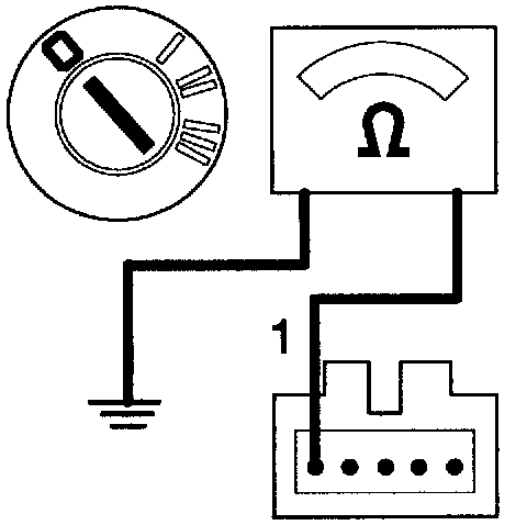 - Connect an ohmmeter between ground and the cable harness 5-pin connector pos. 1.