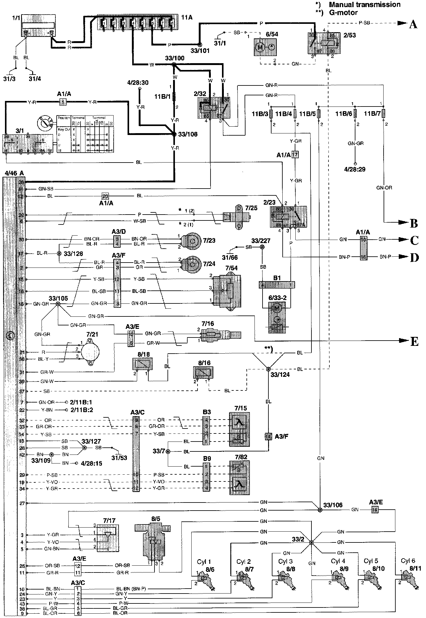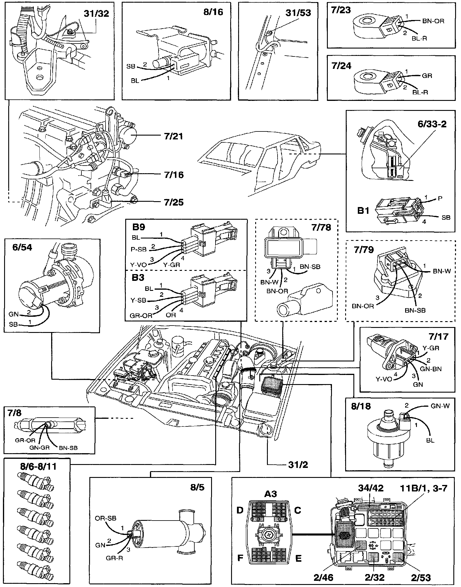 11B/1-18 Fuses in relay/fuse box engine compartment