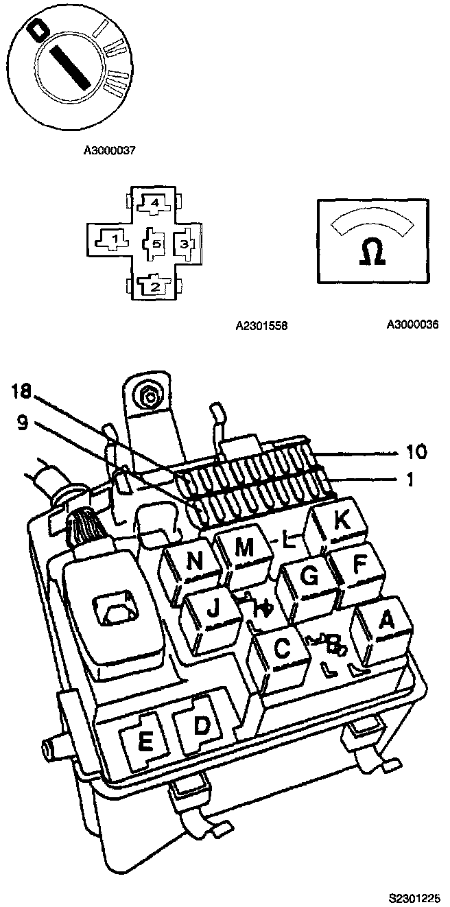 - Connect an ohmmeter between relay base terminal 4 and ground.
