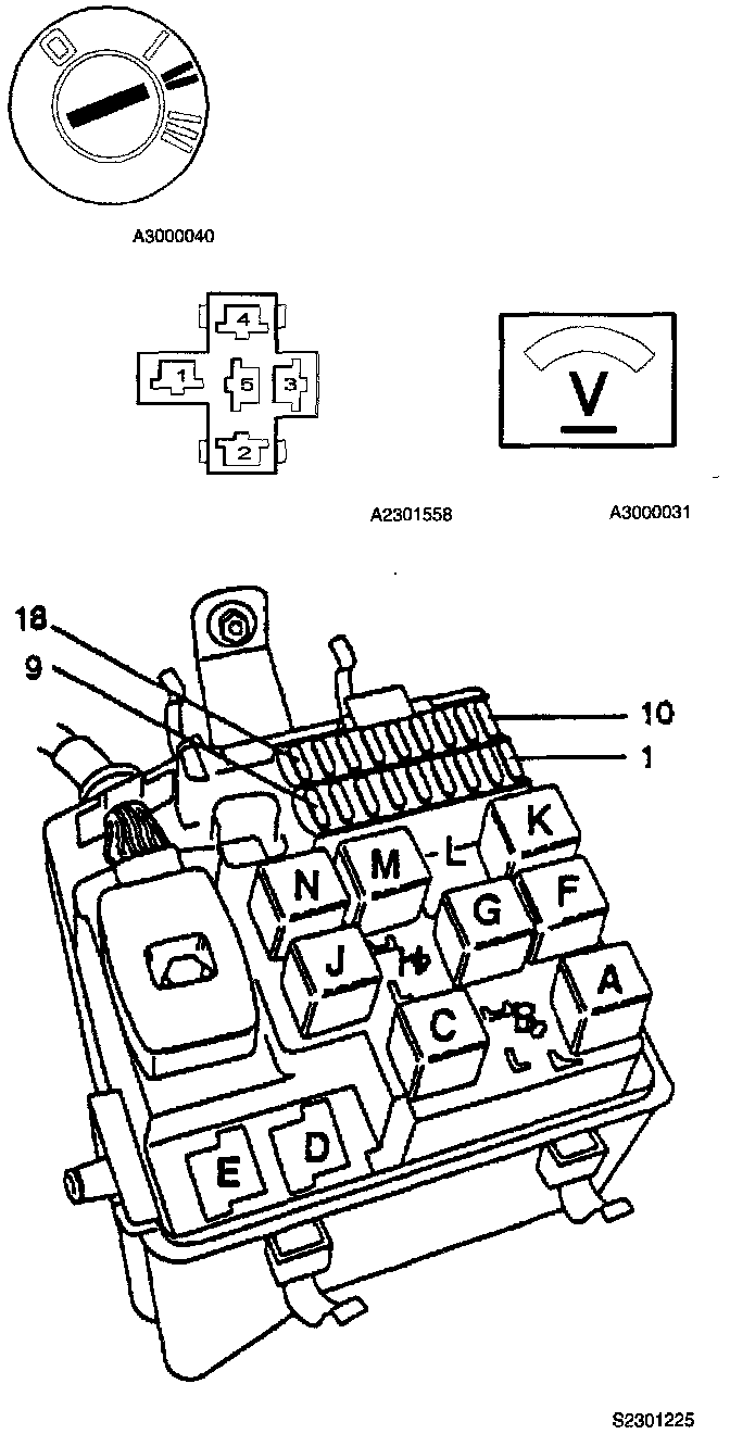 - Connect a voltmeter between ignition relay pins (terminal 3).