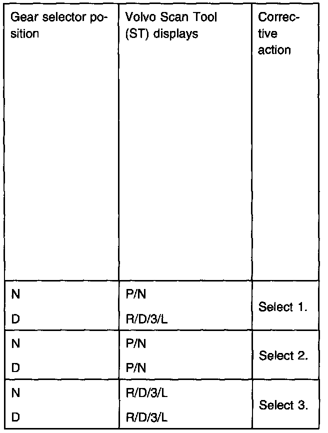 - Move the gear selector to position N and note the gear position displayed by the Volvo Scan Tool (ST).