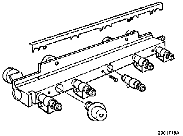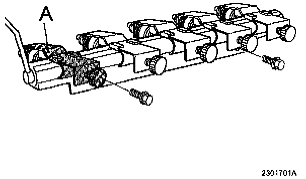 - 4 holders 999 5533-8 and 1 holder 999 5620-3 on the injectors. Position holder 999 5620-3 closest to the fuel pressure line, refer to the left holder (A) on the illustration.