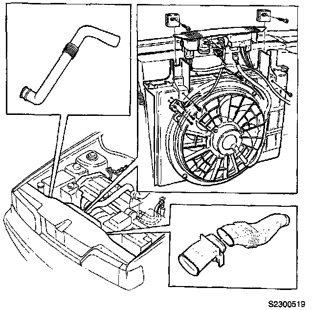 - Fold back shroud a little. Pull up relay mounting and disassemble engine cooling fan connectors and disconnect pulsed secondary air injection system (PAIR) pump valve hoses.