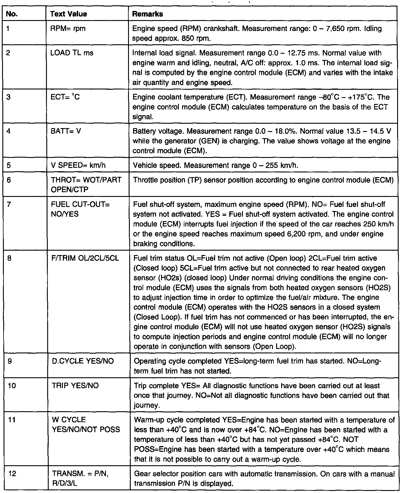 When the engine control module (ECM) registers a system fault and a diagnostic trouble code (DTC) is stored, a number of parameters are frozen in engine control module memory. These frozen values mirror the driving conditions existing when the diagnostic trouble code was stored.