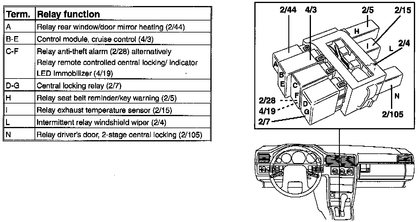 Relays In Relay box, Passenger Compartment (Tunnel):