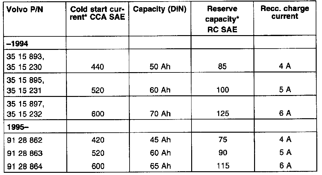 * Cold start current (CCA, SAE) is the discharge current which a battery can supply for 30 seconds at a temperature of - 18°C without falling below 7.2 V.