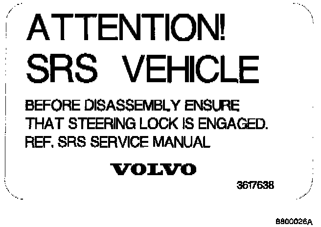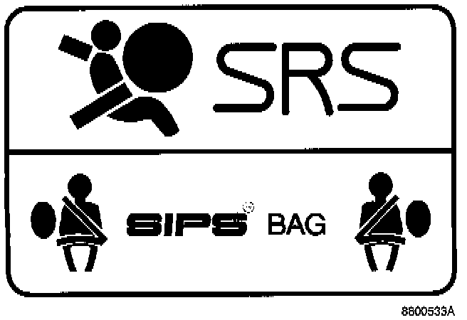 SRS Warning LabelsDecals, located in the following positions, call attention to the fact that the car is equipped with SRS and that it requires special treatment.