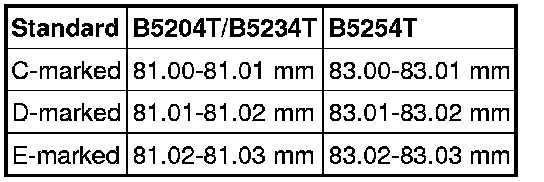 B5204, B5234, B5254 32.000 +0.025/-0.041 mm