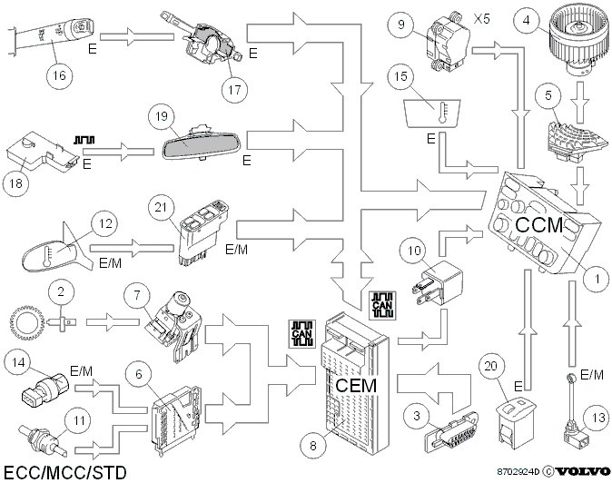 Certain components are directly connected to the Climate control module and others are connected to other control modules in the network. The following signals are sent to the Climate control module regardless of the type of climate control system: