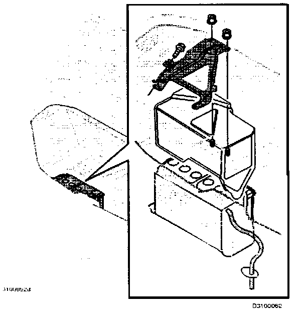 Install the holder on the battery cable (1) and the cable for the injectors (2) as illustrated.