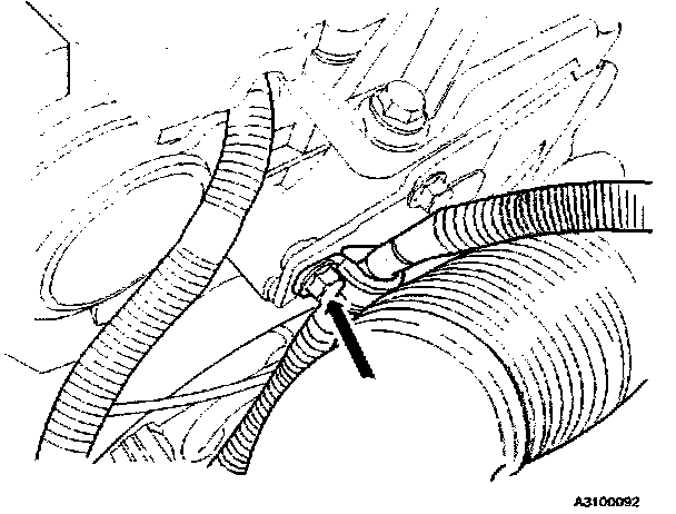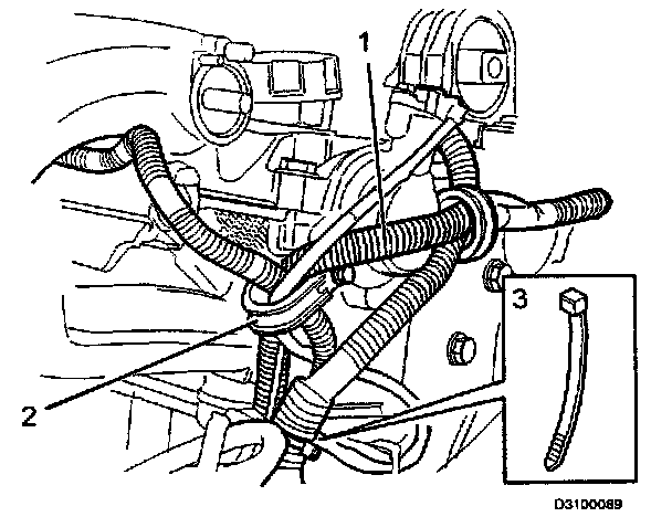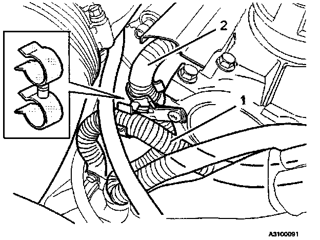 - Make a note of the position of the tie strap (2). Remove the tie strap.