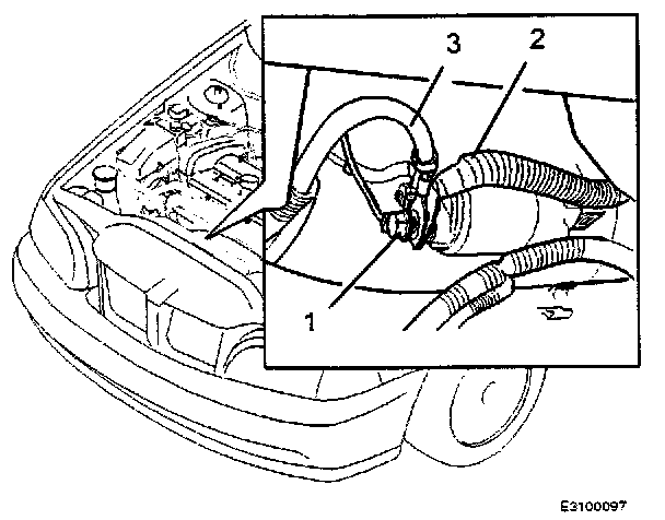 - The battery cable (2) and the alternator cable (3) from the starter motor.