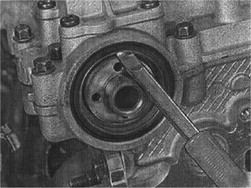 Tighten the center screw on the camshaft belt tensioner to 5 Nm (4 lb.ft).