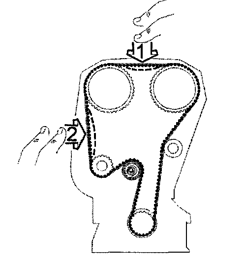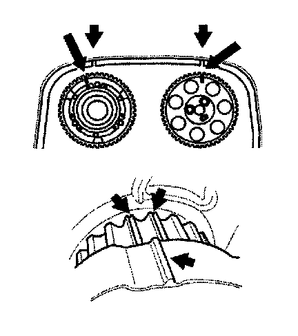 Turn the crankshaft two turns and check that the markings on the crankshaft and camshaft pulley correspond.