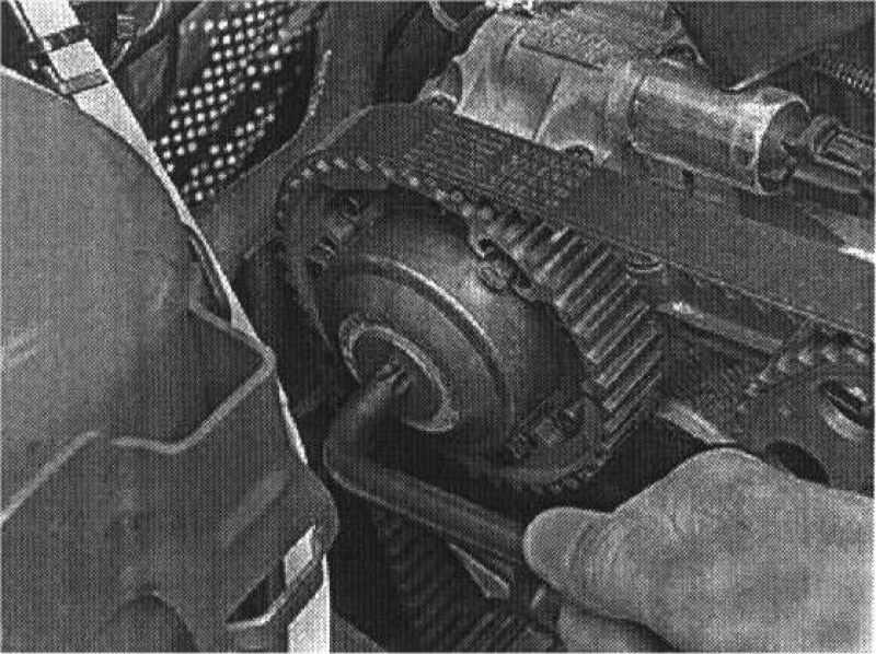 Slacken off, but do not remove, the screws which secure the timing gear pulley to the variable valve timing (VVT) unit.