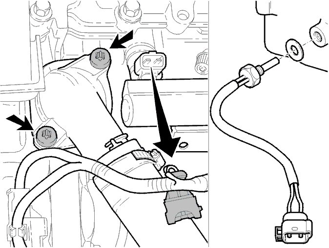 - Install the engine coolant temperature (ECT) sensor. Tighten the engine coolant temperature (ECT) sensor to 10 Nm.