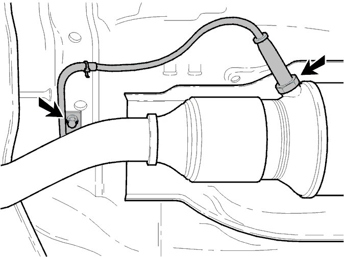 - Rear heated oxygen sensor (HO2S): Disconnect the wiring from the power steering pipe bracket. Pull the wiring downwards.