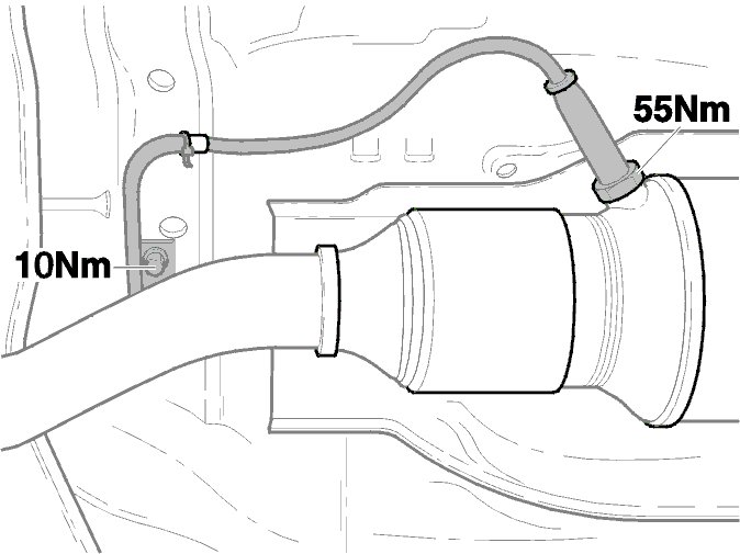 Tighten the heated oxygen sensor (HO2S) to 55 Nm.