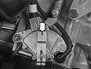 The slot on the tool must line up exactly over the marking on the gear-shift position sensor.