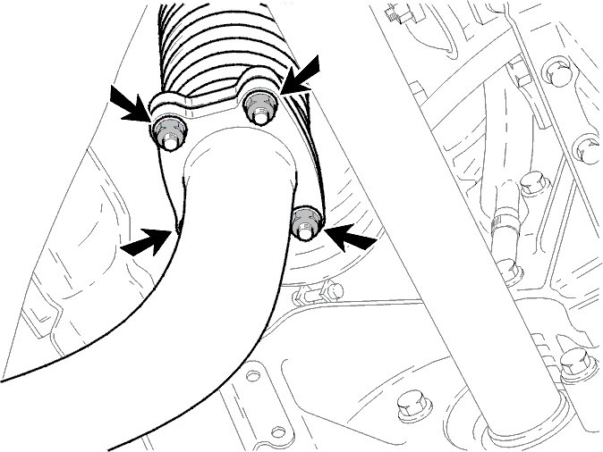 - Secure the front exhaust pipe to the manifold. Tighten the nuts. Tighten to 25 Nm