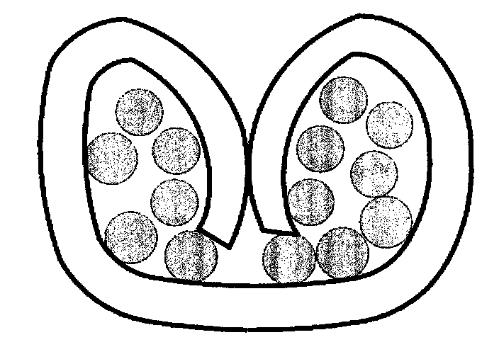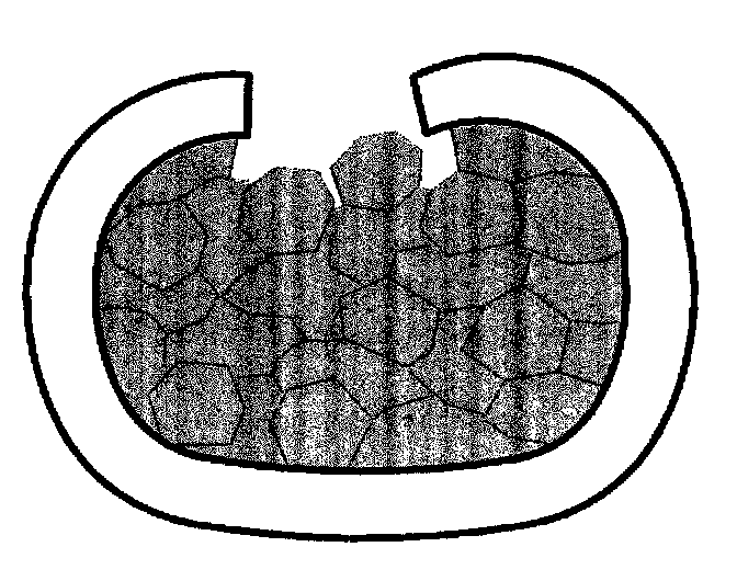 The illustration shows the cross section of the core crimp with the core which is too small for the core wings. As a result the core is not firmly held in place by the pressure of the core wings on the copper strands.