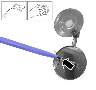 Create a vacuum using the tool and allow the resin filler to run out into the damaged area.
