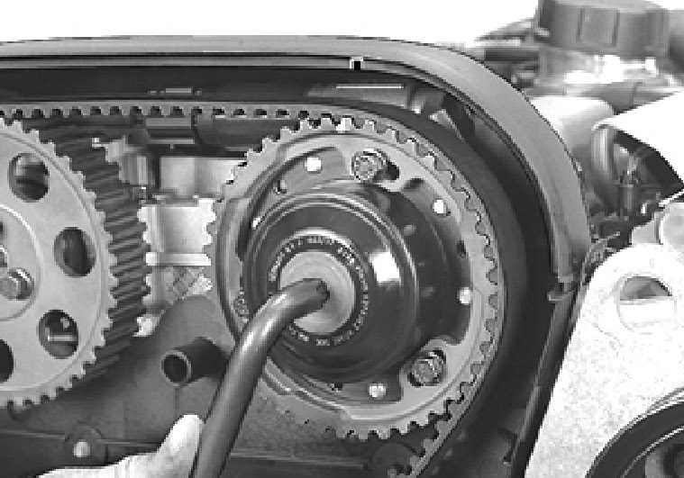 Installing the timing gear pulley for the camshafts. The toothed belt with the Variable valve timing (VVT) unit