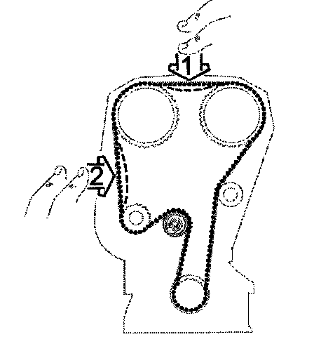 Press the toothed belt to check that the indicator on the tensioner moves easily.