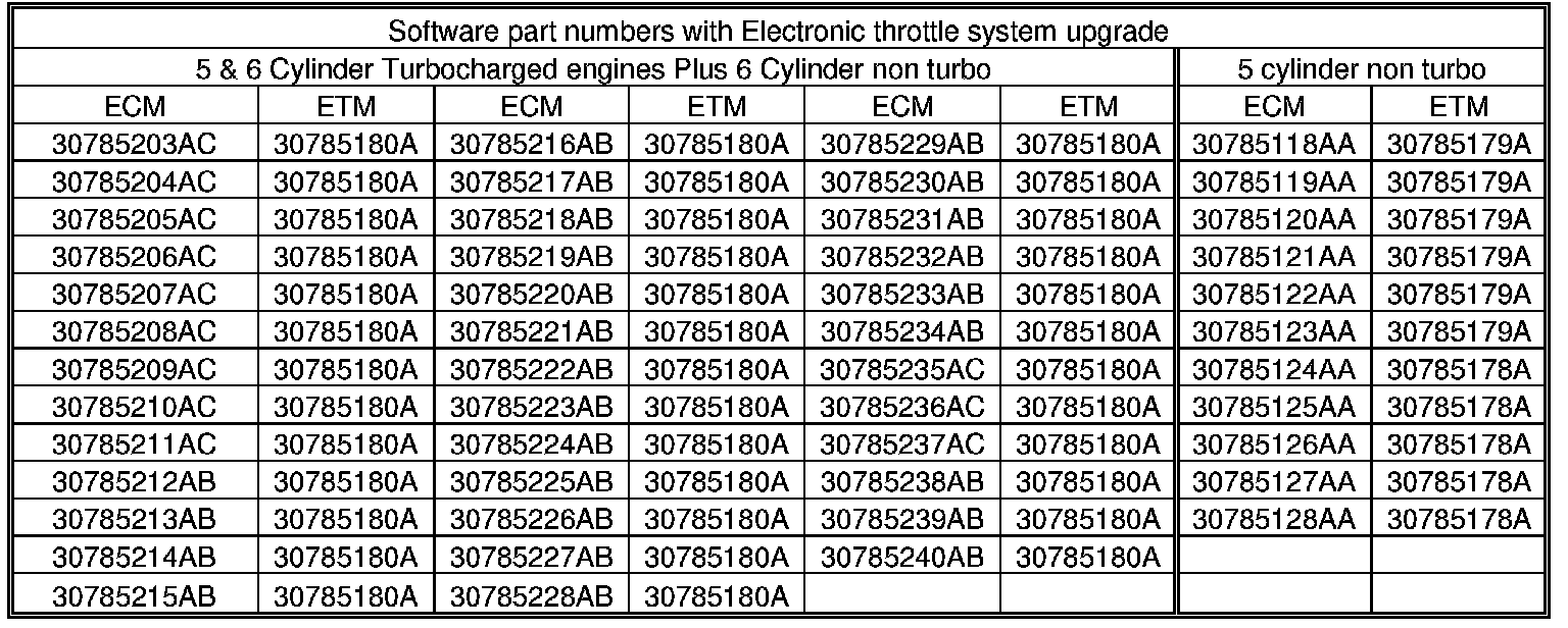 Beginning March 17th 2006 there will be an Electronic Throttle System (ETS) software upgrade available for the vehicles listed above. The software contains changes that will reduce driver disturbances by allowing the system to better differentiate between glitches or minor disturbances, and system faults. The upgraded software will also reduce driver disturbances due to idle oscillations caused by dirt build-up in the throttle. TNN 25-149A will be updated to guide service technicians on the changes. The fault tracing for each DTC in the TNN will give guidance on where it is appropriate to use the software as a solution for DTC's triggered in the vehicles current software. As the ETS software resides in both the Electronic Throttle Module (ETM) and the Engine Control Module (ECM), both will receive new software with the upgrade.