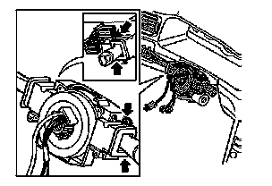 - the control module with stalks and the contact reel by releasing the catches on the underside