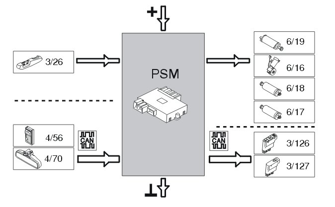 The power seat module is directly connected to components and to other control modules via CAN communication.
