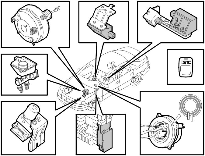 The ABS control module with DSTC uses continuous information from the different sensors in the system to calculate the position of the steering wheel and car. The ABS control module calculates the driving manner of the driver by measuring the steering wheel angle, engine torque, speed of the car and brake pressure. The ABS control module also calculates the behavior of the car by monitoring the steering wheel angle, steering wheel angle speed, yaw rate speed and lateral acceleration. When the differences between the movements of the driver and the behavior of the car exceed a certain point, Active Yaw Control limits the engine torque to maintain lateral stability in all driving conditions. Active Yaw Control also activates the power brake booster and the individual brake control to control the hydraulic modulator separation valves and hydraulic shuttle valves and the inlet and outlet valves which correct the car in the event of a skid.