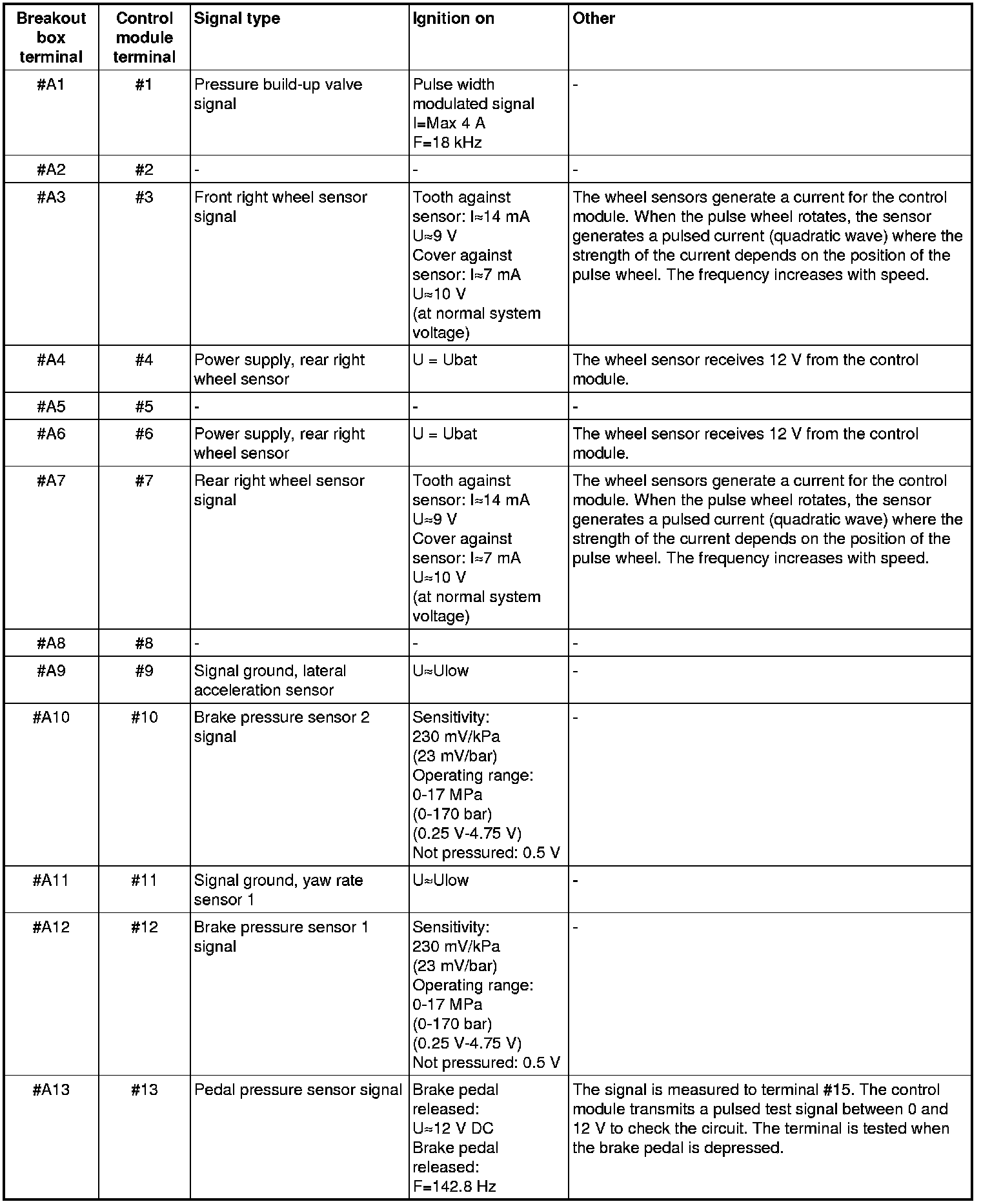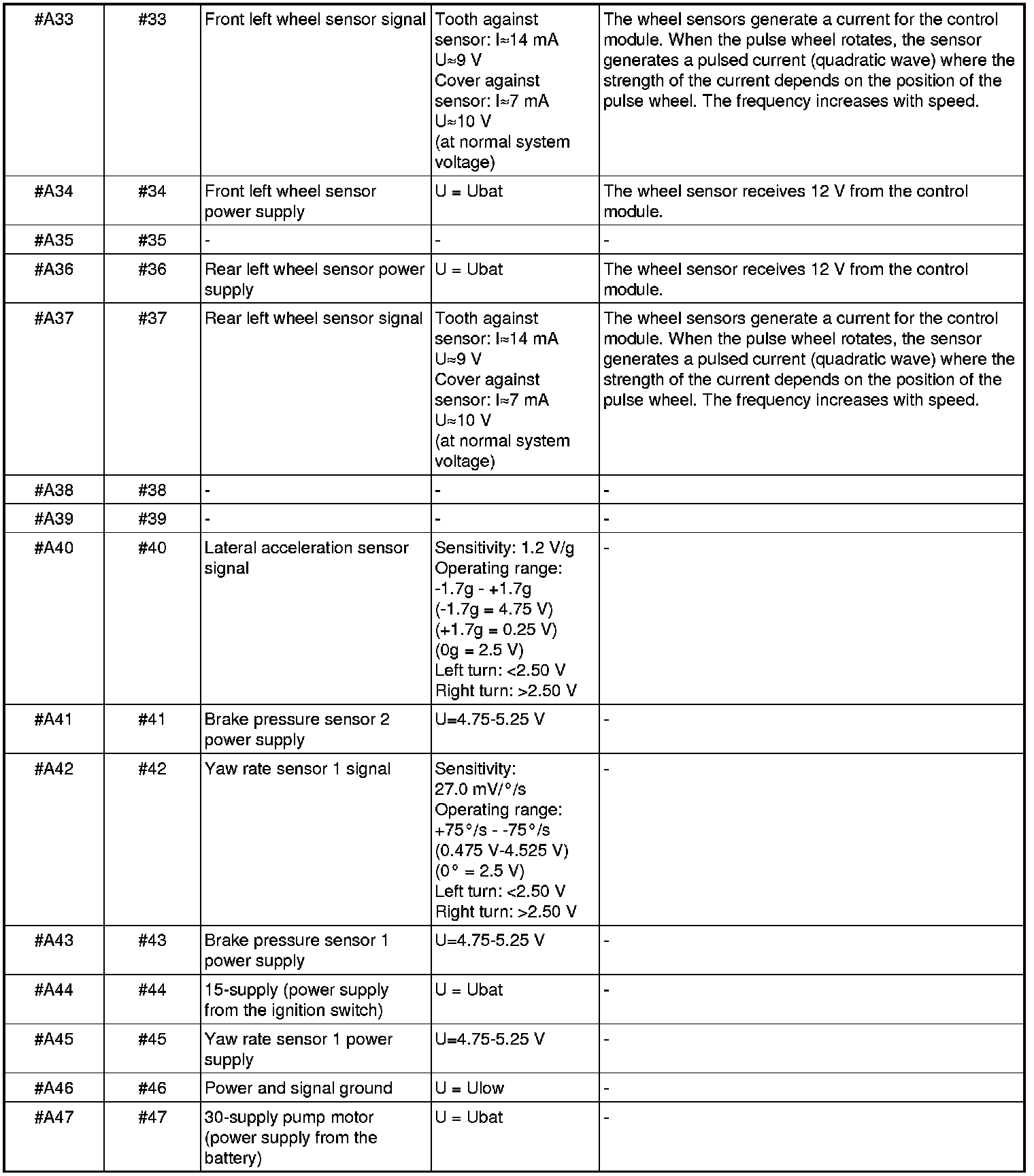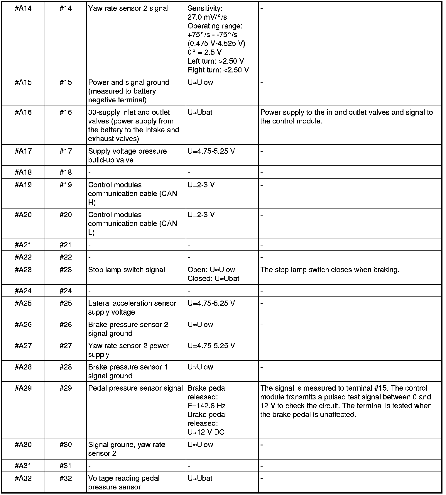Signal specification, ABS / DSTC (dynamic stability and traction control) control module