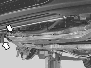 Loosen the protective cover under the engine by removing the screws, 7 pcs.