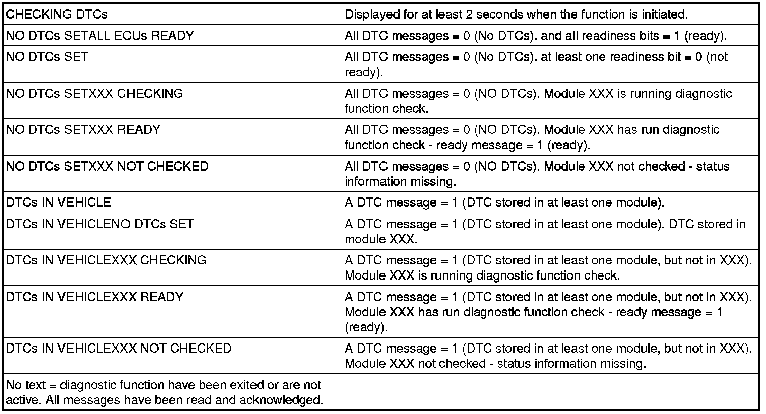 XXX in the table below = three character abbreviation for the affected module, for example Rear Electronic Module (REM).
