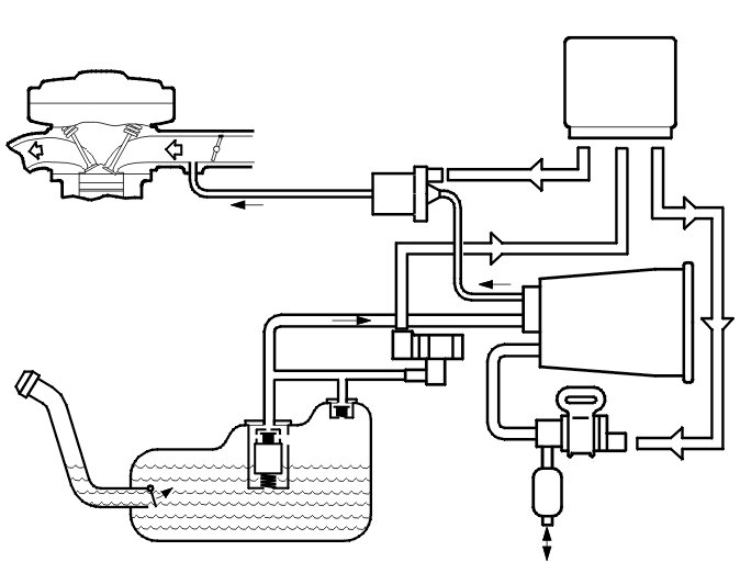 Hint: The direction of airflow during a quick test can be calculated from the fuel tank: fuel tank, evaporative emission system (EVAP) canister, evaporative emission system (EVAP) valve. The fuel tank pressure sensor measures the pressure in the hose between the fuel tank and the evaporative emission system (EVAP) canister.