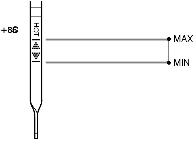 At the correct temperature, the oil level should be between "Min hot" and "Max hot".