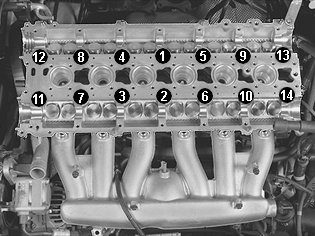 Third pass: Tighten camshaft cover screws alternately, keeping it parallel to cylinder head