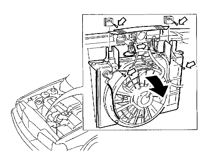- Detach fan shroud and lower it to the rear against the engine.