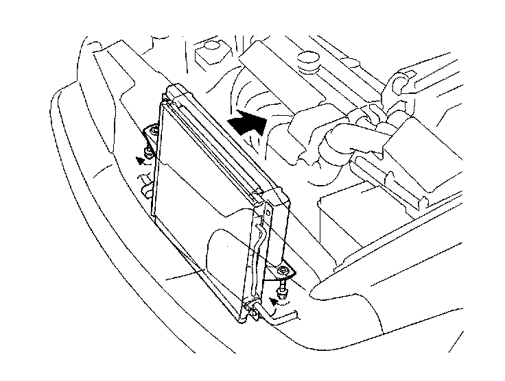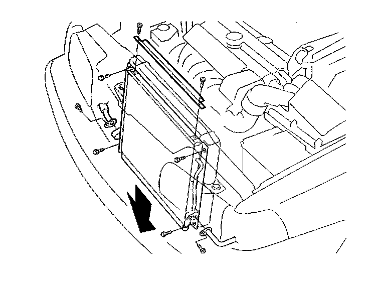 - Undo screws on the cooling unit so that it can be lowered and angled in against the engine.