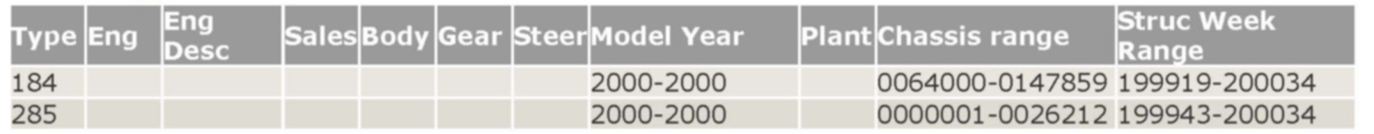 * 184 SW P/N 9438296
