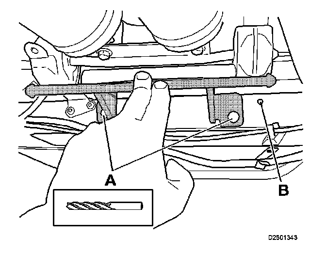 - hole (B) for the heated oxygen sensor wiring using a 5 mm (13/64") drill.
