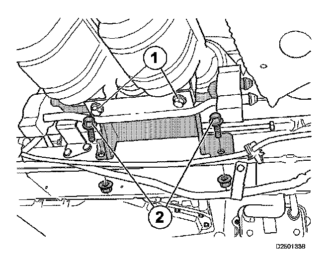 - the bracket for the sub frame using the screw and nut (2). Tighten to 50 Nm