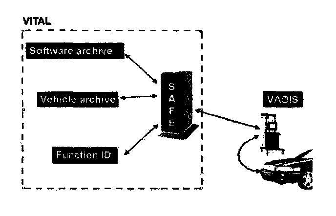 The VADIS stations where software downloading is possible are connected to the Volvo central database via a local area network (LAN) or modem. If communication can not be established or if communication is broken between one server, there is an automatic connection to the other server, where all the information is kept temporarily.