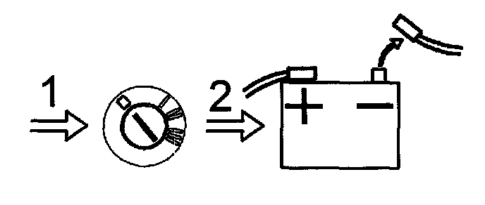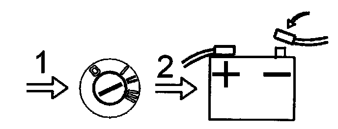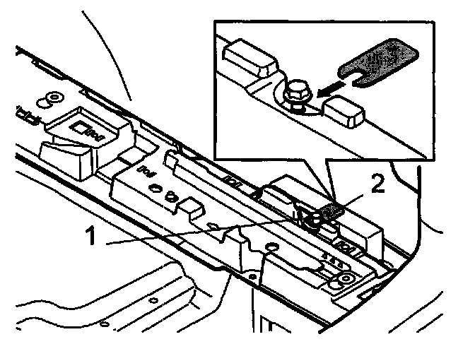 - Remove the connector (1) from the terminal (2) above the cable duct under the rear seat cushion