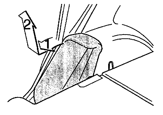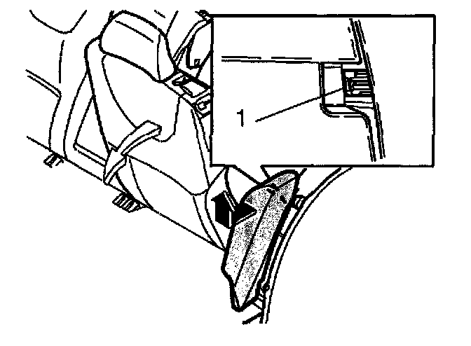 - Pull the tailgate sill trim panel(2) forwards on the right and left-hand sides until the clips on each side release. Pull hard but carefully. The panel is securely positioned
