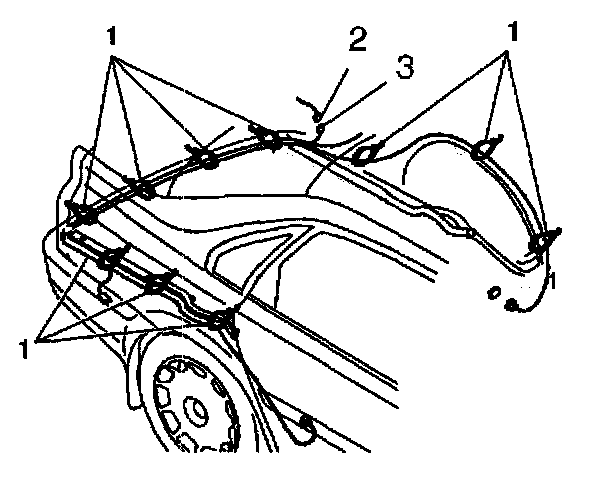 - Connect the connector (3) from the routed cable harness to the terminal (2)