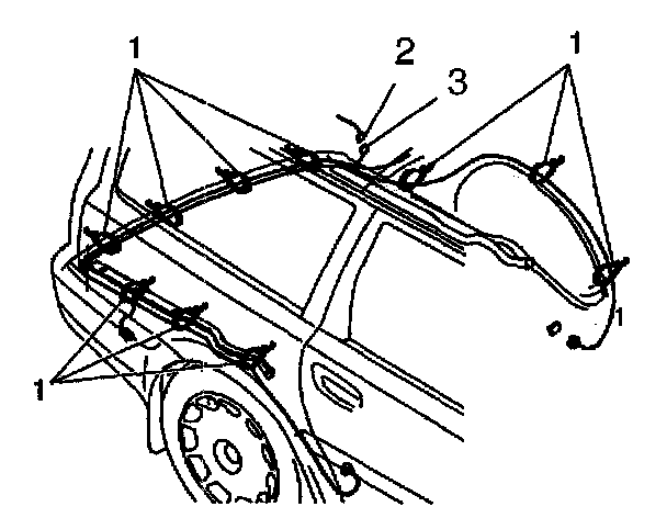 - Route the cable harness along the sides of the cargo compartment and out into the passenger compartment as illustrated