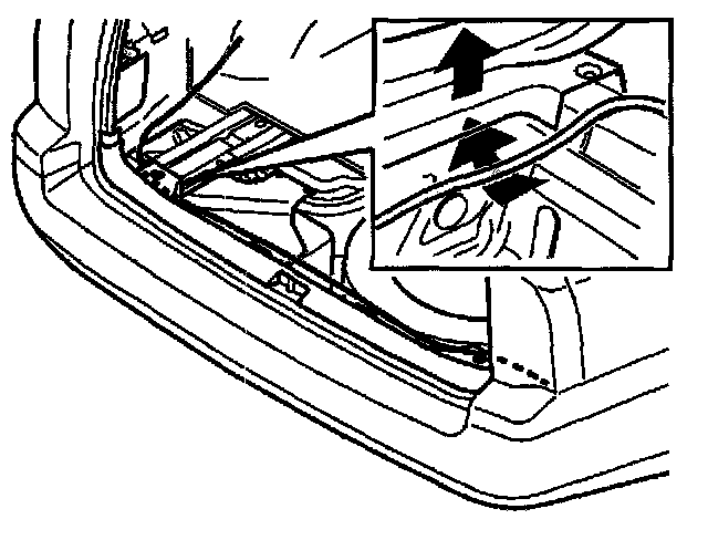 - Route the new cable harness along the side of the cargo compartment and out into the passenger compartment as illustrated